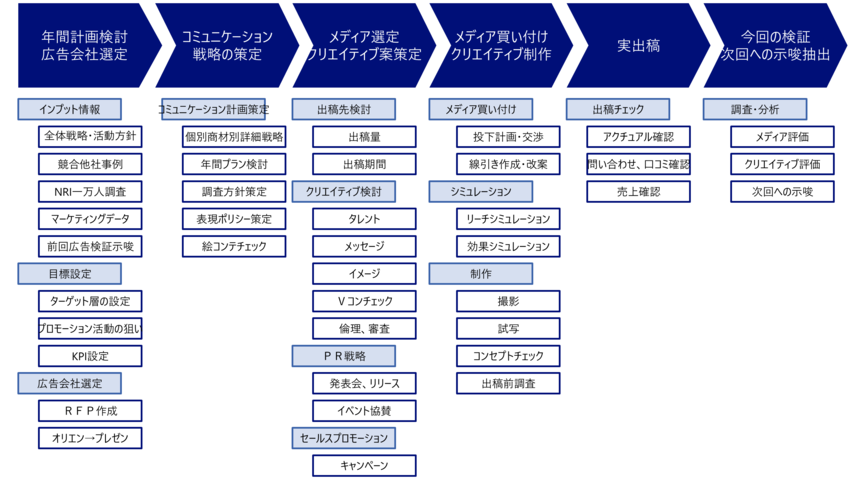 コミュニケーション戦略(策定-立案-実施-検証) 業務フロー(一般的な例をベース)