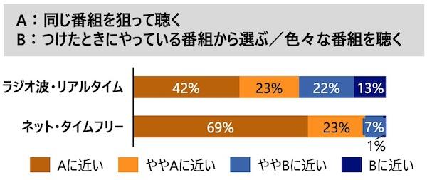 ラジオ波・リアルタイムは"ながら"視聴ネット・タイムフリーは好きな番組を専念視聴